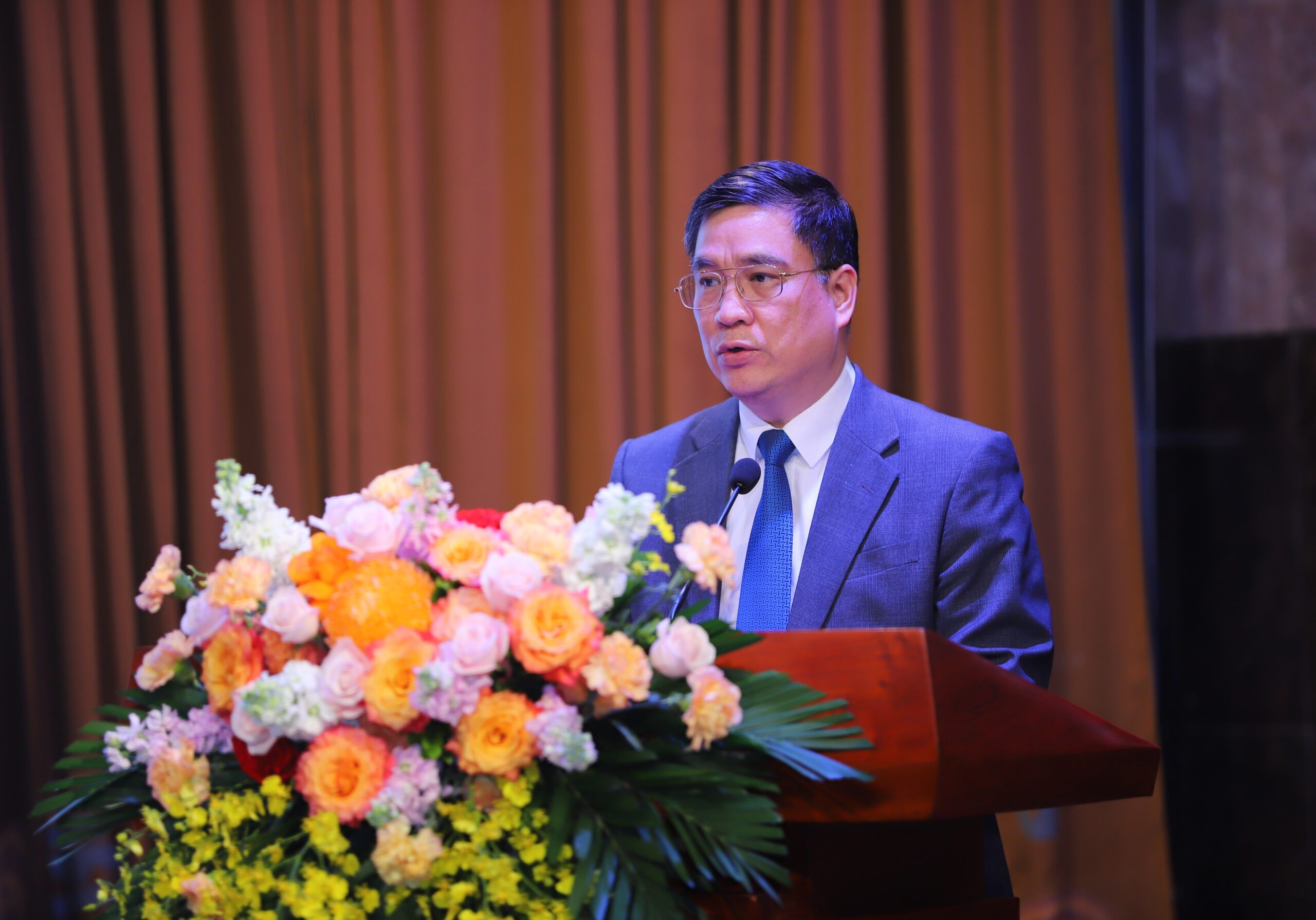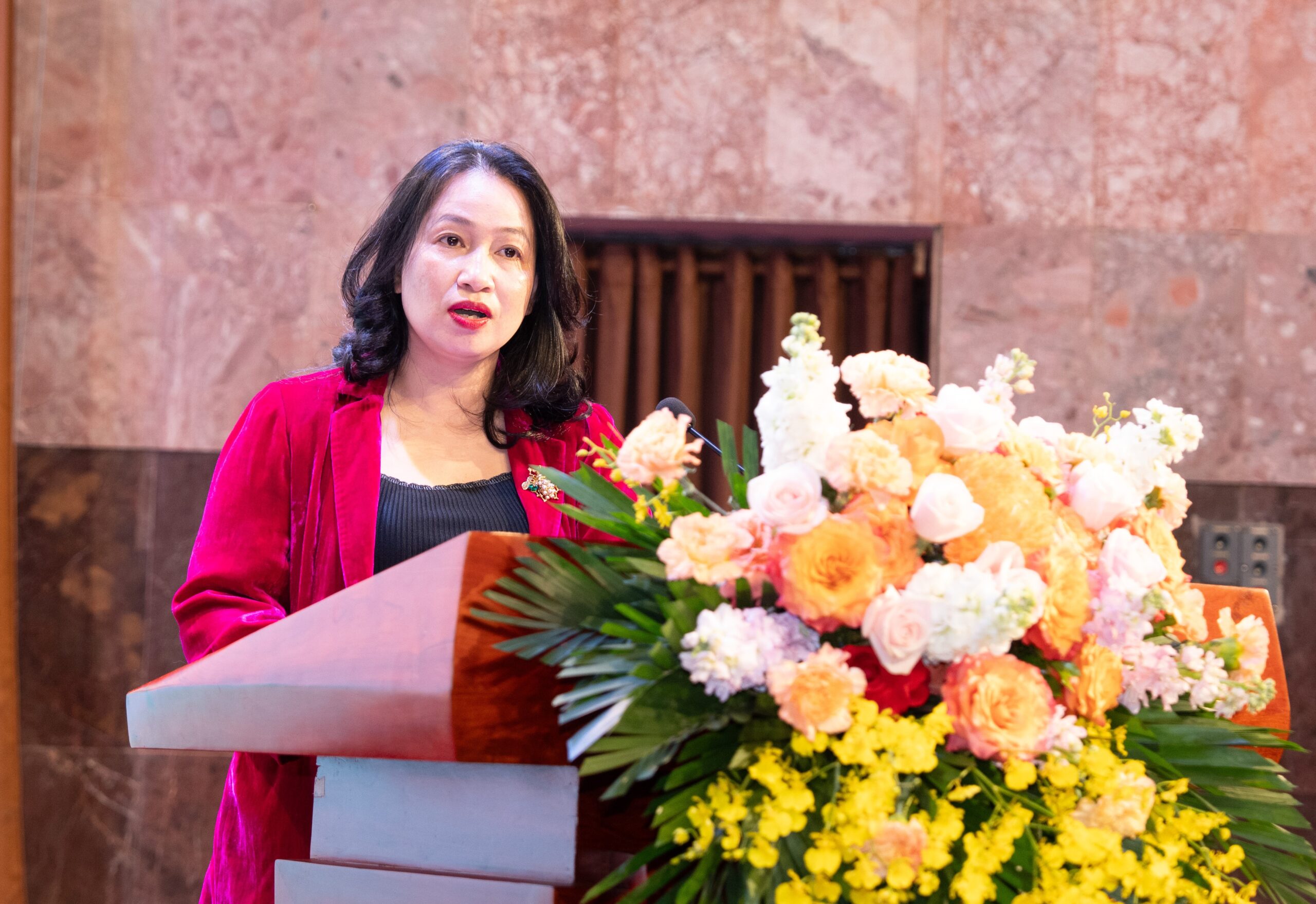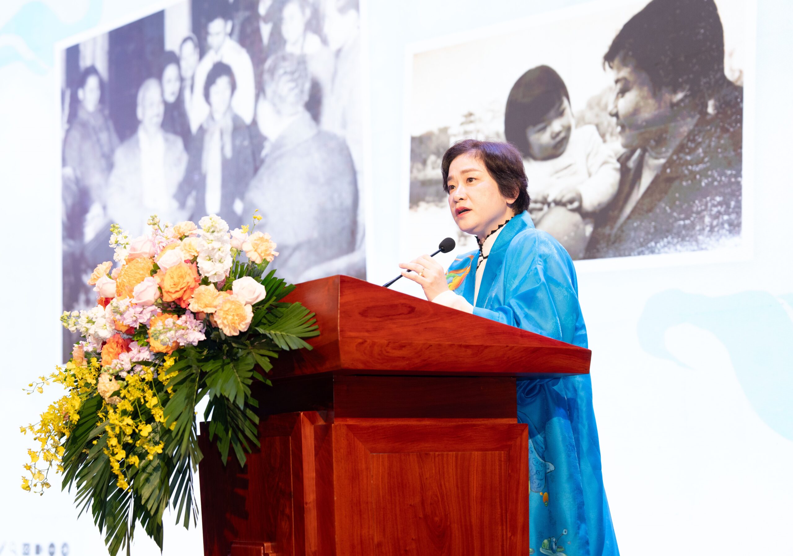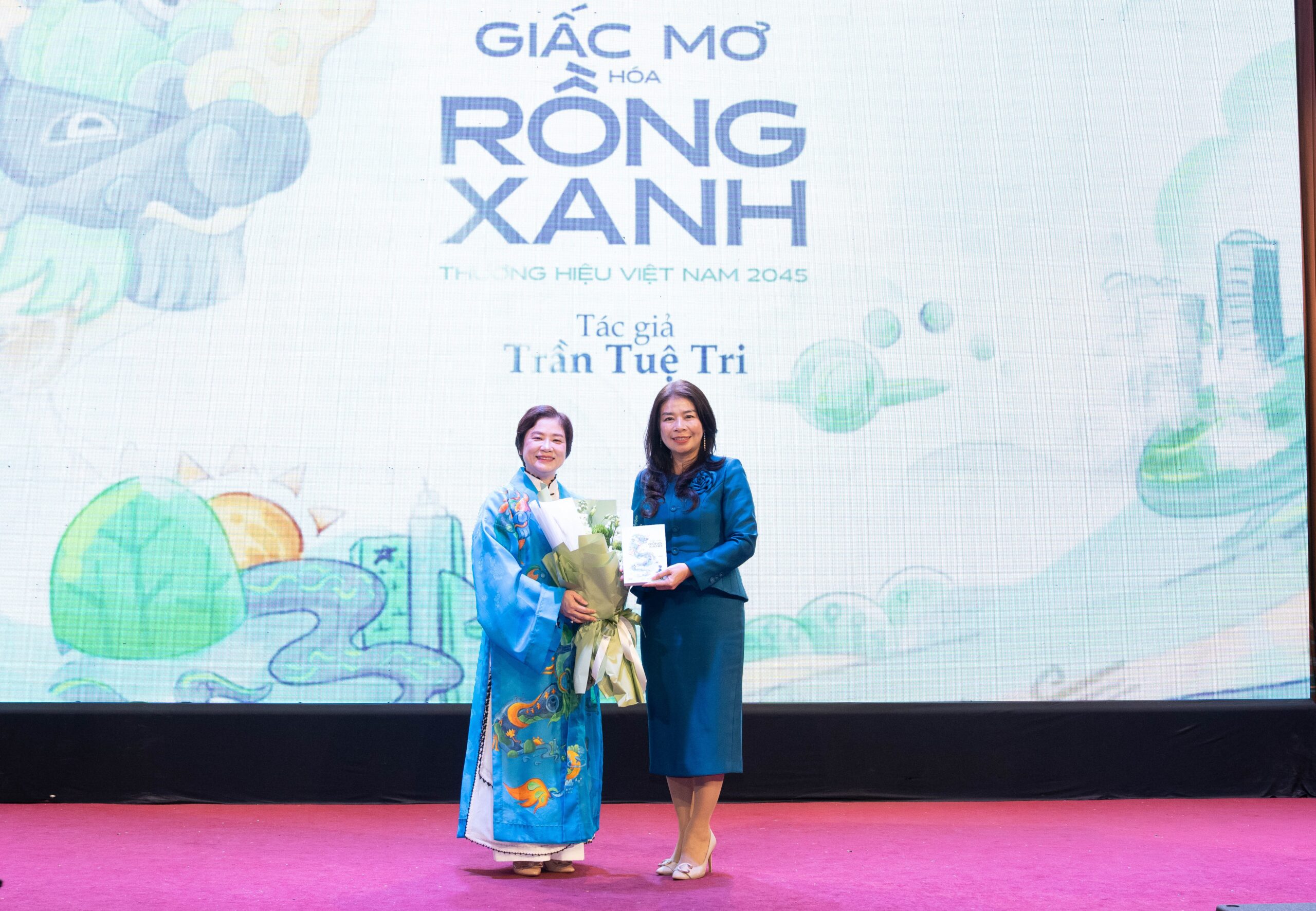 TS. Lê Thu Hà – Phó Chủ nhiệm Văn phòng Quốc hội tặng hoa chúc mừng tác giả Trần Tuệ Tri ra mắt cuốn sách “Giấc mơ hóa Rồng Xanh – Thương hiệu Việt Nam 2045”.