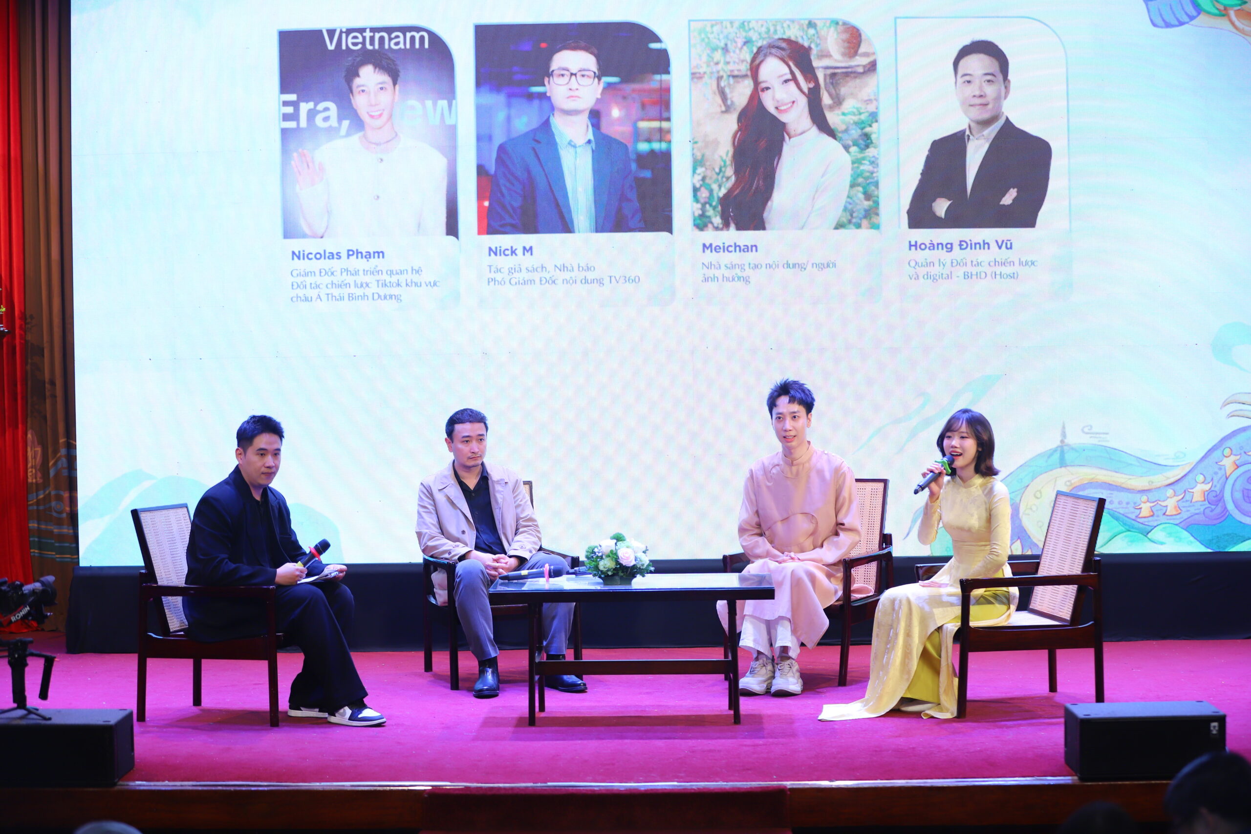 Tại Tọa đàm thứ hai, diễn giả tham gia là các bạn trẻ: Nicolas Phạm – Giám đốc Phát triển quan hệ Đối tác chiến lược Tiktok khu vực châu Á – Thái Bình Dương; Nick M – Tác giả sách, Nhà báo, Phó Giám đốc nội dung TV360; Meichan – Nhà sáng tạo nội dung số.