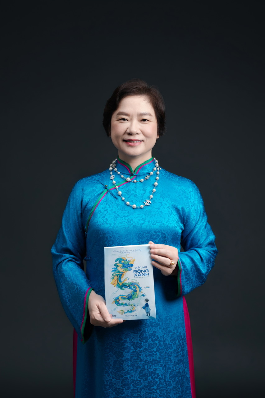 Tác giả Trần Tuệ Tri cùng cuốn sách “Giấc mơ hóa Rồng Xanh – Thương hiệu Việt Nam 2045”.